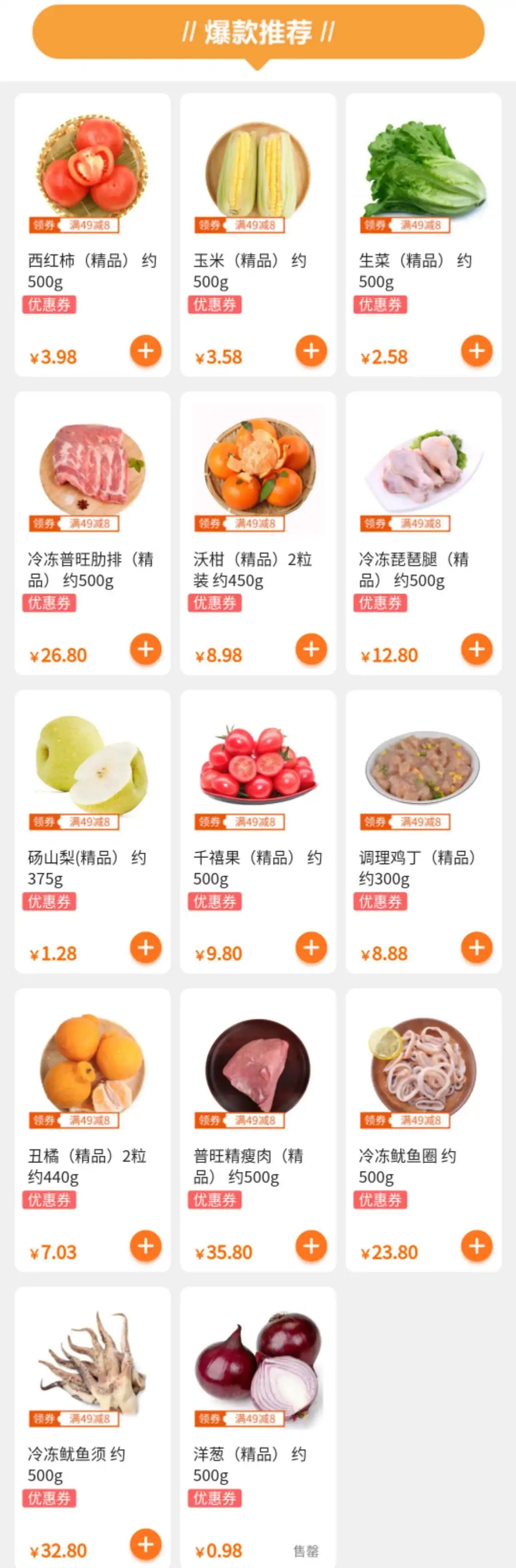 專(zhuān)場(chǎng)三:生鮮專(zhuān)場(chǎng)49減8